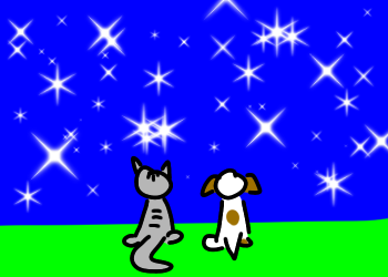 You follow Kitty for a long while into the forest, where you both end up at a clearing. The stars are out.